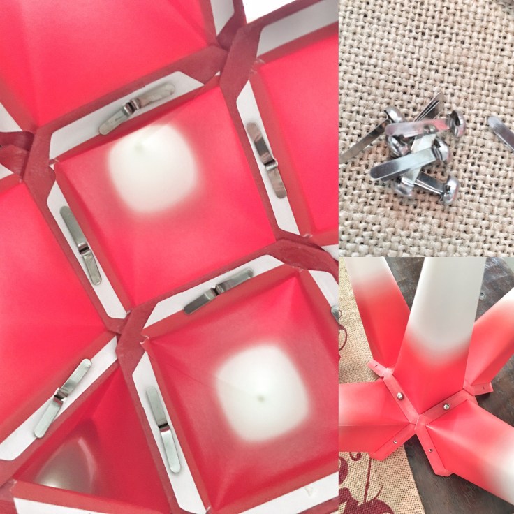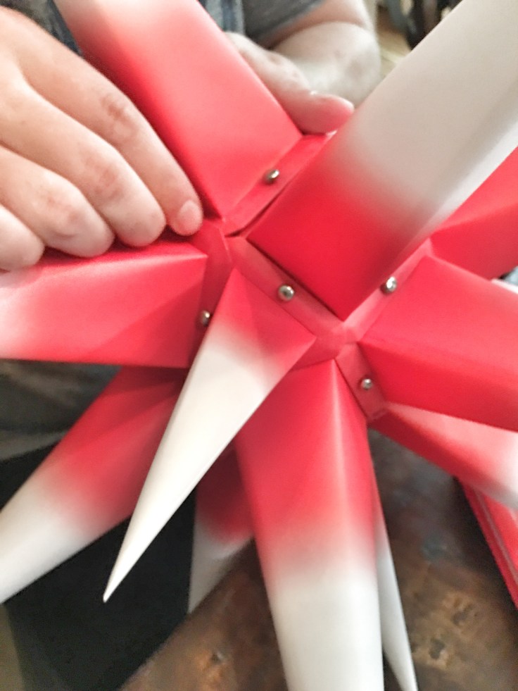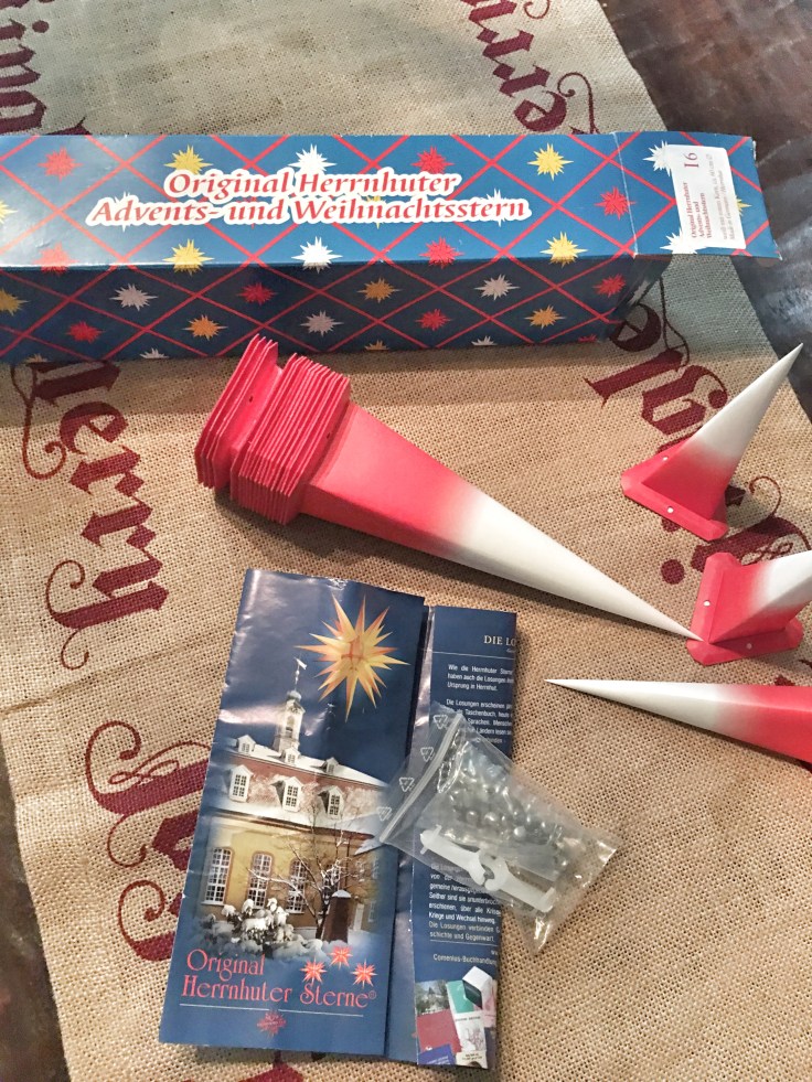 Nowadays the most common Herrnhut Star has 26 points, usually made up of 18 squares and 8 triangular comes that made up a sphere. The mathematical word for it is rhombicuboctahedron (try to say that three times fast). It honestly takes a while to put together since you have to see how the pieces fit and in what order they go… just like a puzzle!