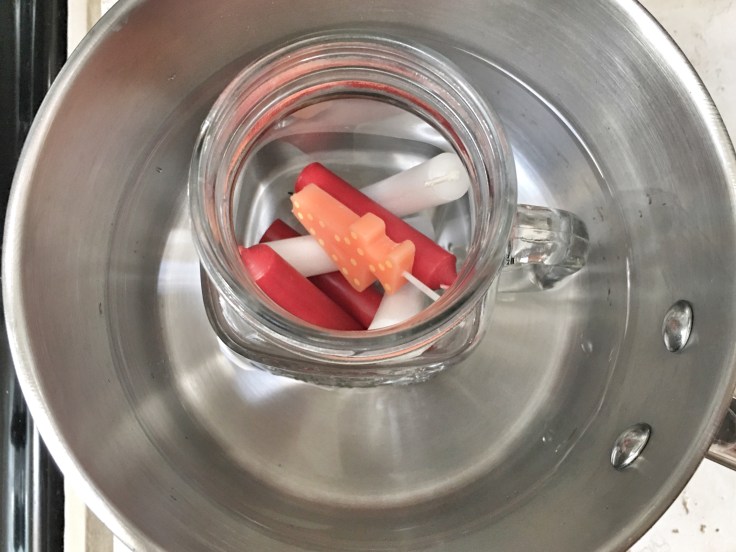 - Melt candle chunks in boiling water.