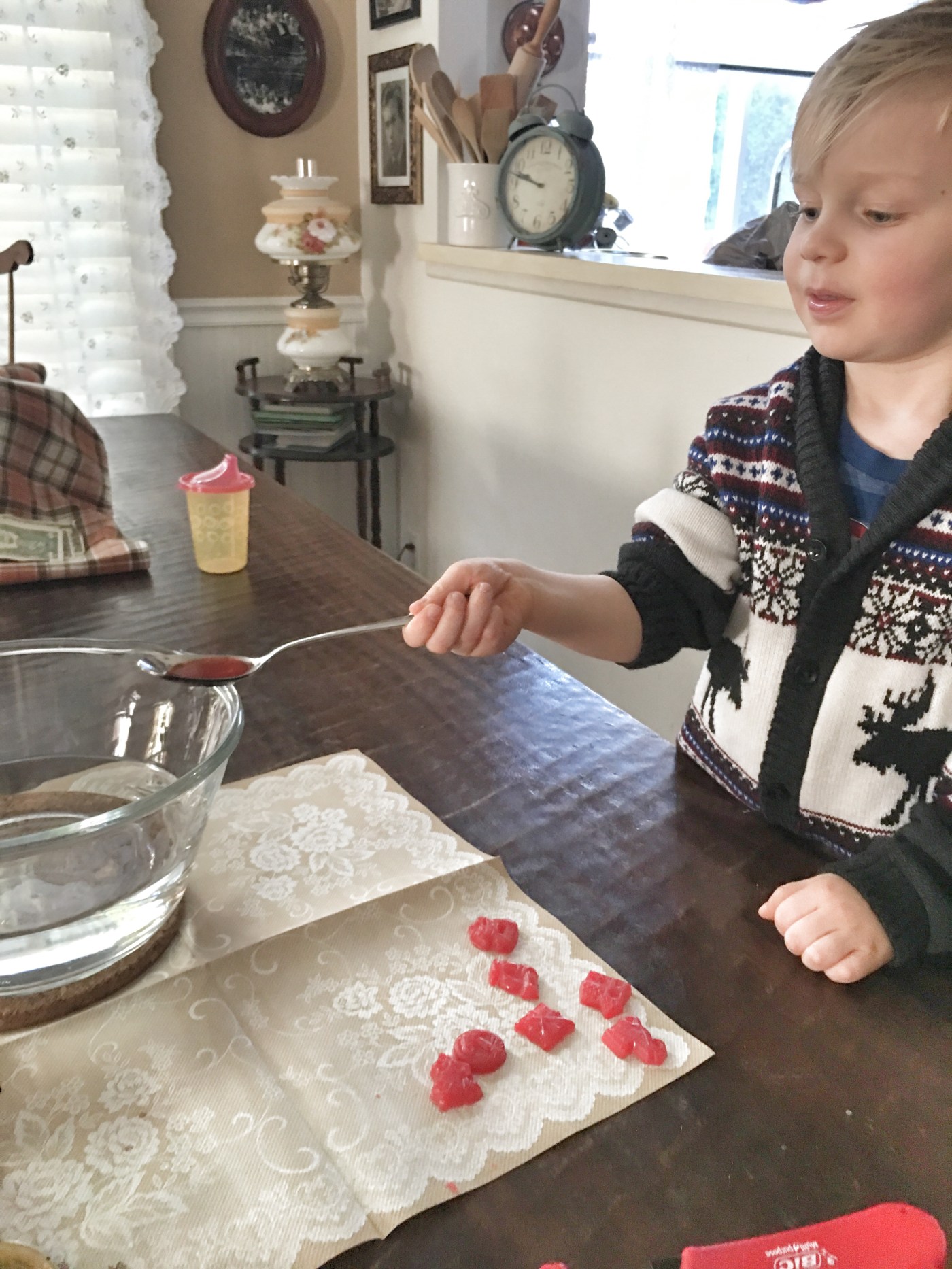 But since the use of lead is illegal since 2018 and the kits aren’t sold in stores anymore, our family replaced it with candle wax this year and made our own Wachsgiessen or wax pouring kit.