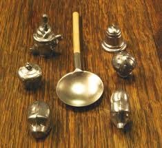 Throughout Germany, Austria and Switzerland you can buy these lead-pouring kits. Sold with a wood-handled spoon to help melt them down, they include several little lead figures. Using a candle, each person holds the spoon over the flame to melt down a small amount of lead and then pours it into a container of water to produce a “frozen” shape. The Bleigiessen kit also comes with a little booklet where all the shapes are listed and what they possibly mean for your future. A bird for example means good luck. A tree means growth. Each shape is interpreted to predict that person’s fate for the coming year.