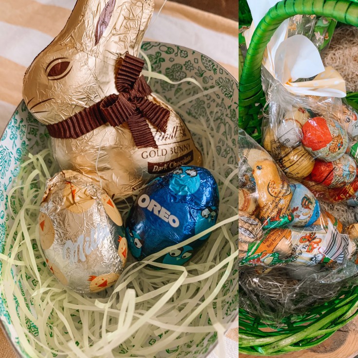 We found a bunch of these Mache eggs at World Market this year. They are perfect for filling with a hand full of Easter grass and candy, chocolate or a small toy. They also make for great Easter decor by just being placed on a table. And the best is you can reuse them year after year. On Amazon, some even come as nesting eggs as a set of six, making storage very easy.