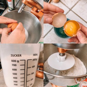 Every year my mom loves to make a traditional Osterzopf. The sweet braided bread also known as Hefezopf or yeast braid is made with a yeast dough and includes creamy marzipan and toasted almonds with a sweet jam glaze. It is one of my favorite Easter treats (besides the big chocolate Osterhase or Easter bunny).