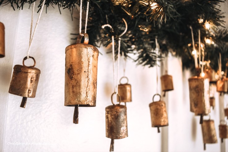One of my favorite item this Christmas are these vintage copper bells. Not only do they glisten in the warm light of the garland, but they add an instant focal point along the kitchen wall.