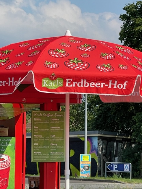 But even if people don’t have their own Erdbeerfeld or strawberry field, there is no shortage on places to buy them. Every year, on street corners and grocery parking lots Karl’s Erdbeer-Hof offers strawberry enthusiasts the opportunity to buy farm fresh strawberries from their pop-up huts. Brightly colored and designed to look like a strawberry, the stands are open Monday through Saturday and carry a variety of strawberries. Many of these huts are also serving customers inside malls, making it easy to get your strawberry fix.
