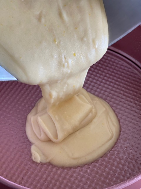 - Pour the batter into the prepared pan.