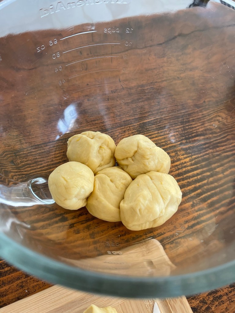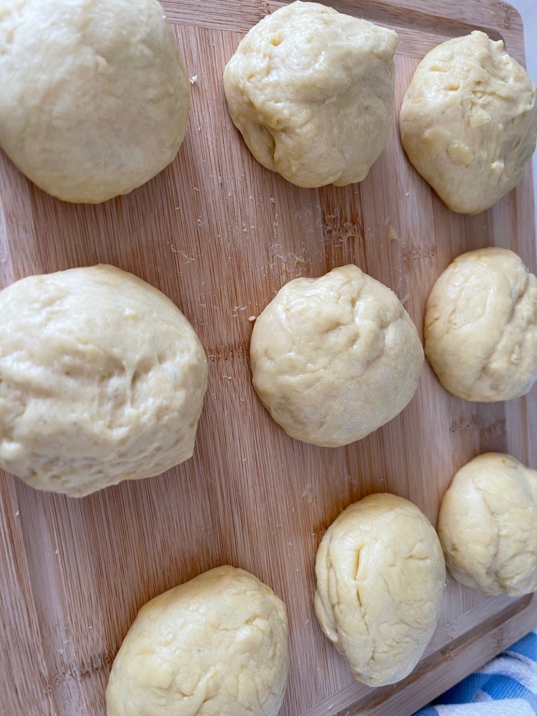- Shape the dough into balls, cover with a towel again and let rise again for an additional 30 minutes until they have increased in size.