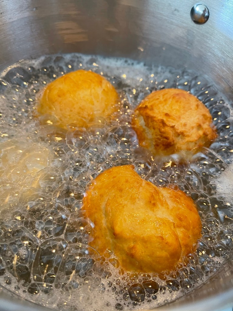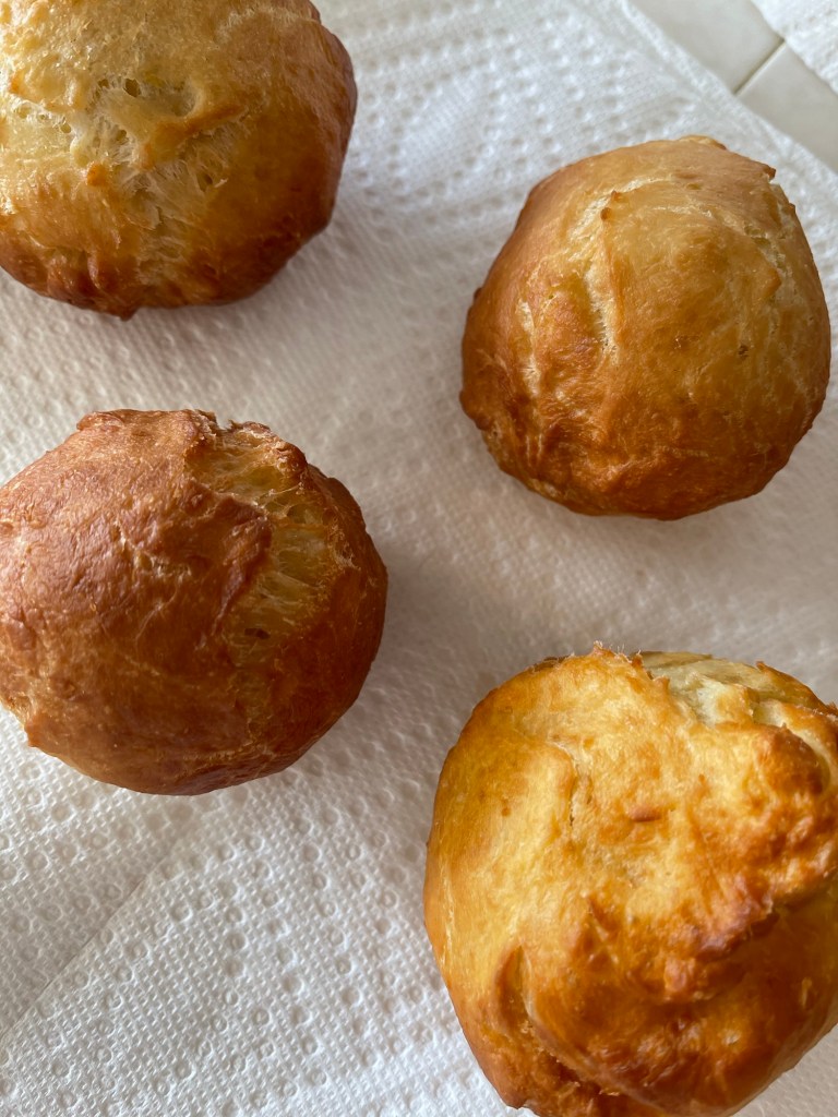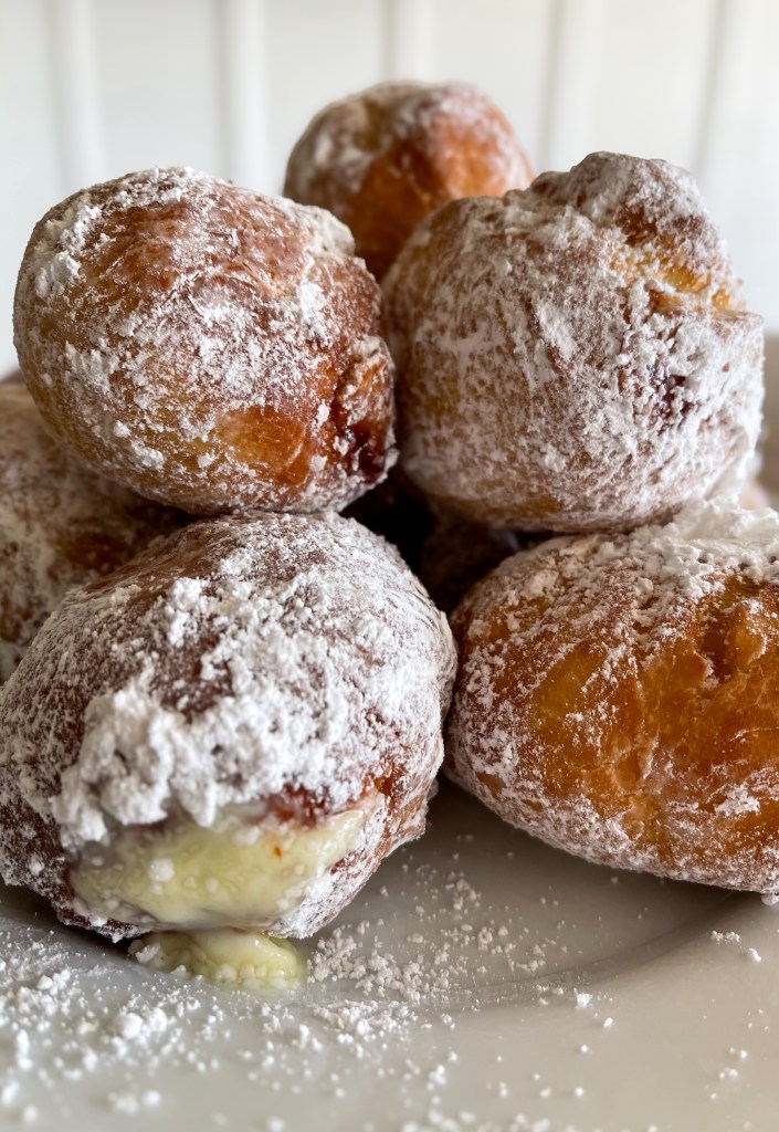 - After being completely cooled, fill a ziplock bag or piping bag with jam or vanilla pudding/custard.