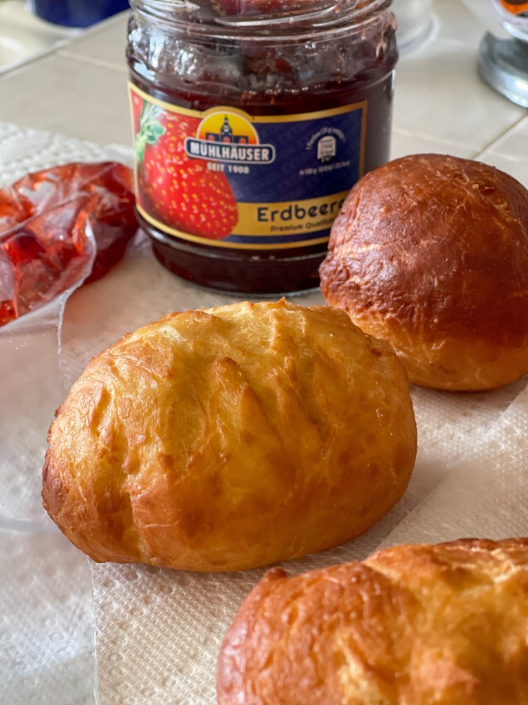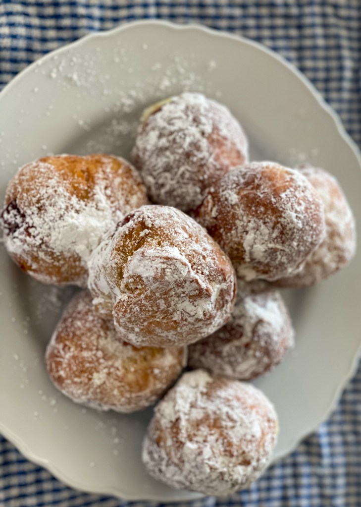 Today, Pfannkuchen continue to be a beloved part of New Year’s celebrations in Germany. Many families have their own special Pfannkuchen recipes, passed down through generations, that they prepare each New Year’s Day. And our family is no different. Weeks before New Year’s, my Oma would reach out to us and ask how many Pfannkuchen each family member wanted. On New Year’s Eve morning, or sometimes the day before, she would wake up before the sun and begin frying the dough she had prepared beforehand. By noon, after hours of frying and filling them with various types of jam, like Pflaumenmus or simply dusting them with powdered sugar, we would all collect our orders. And of course, we would each enjoy one with a cup of coffee or milk as a taste test. To this day, it remains one of my favorite memories, including the sight of my Oma washing all her curtains hours later or the next day because the aroma of Pfannkuchen would linger in her apartment. It truly provided a sweet start to the New Year every time!